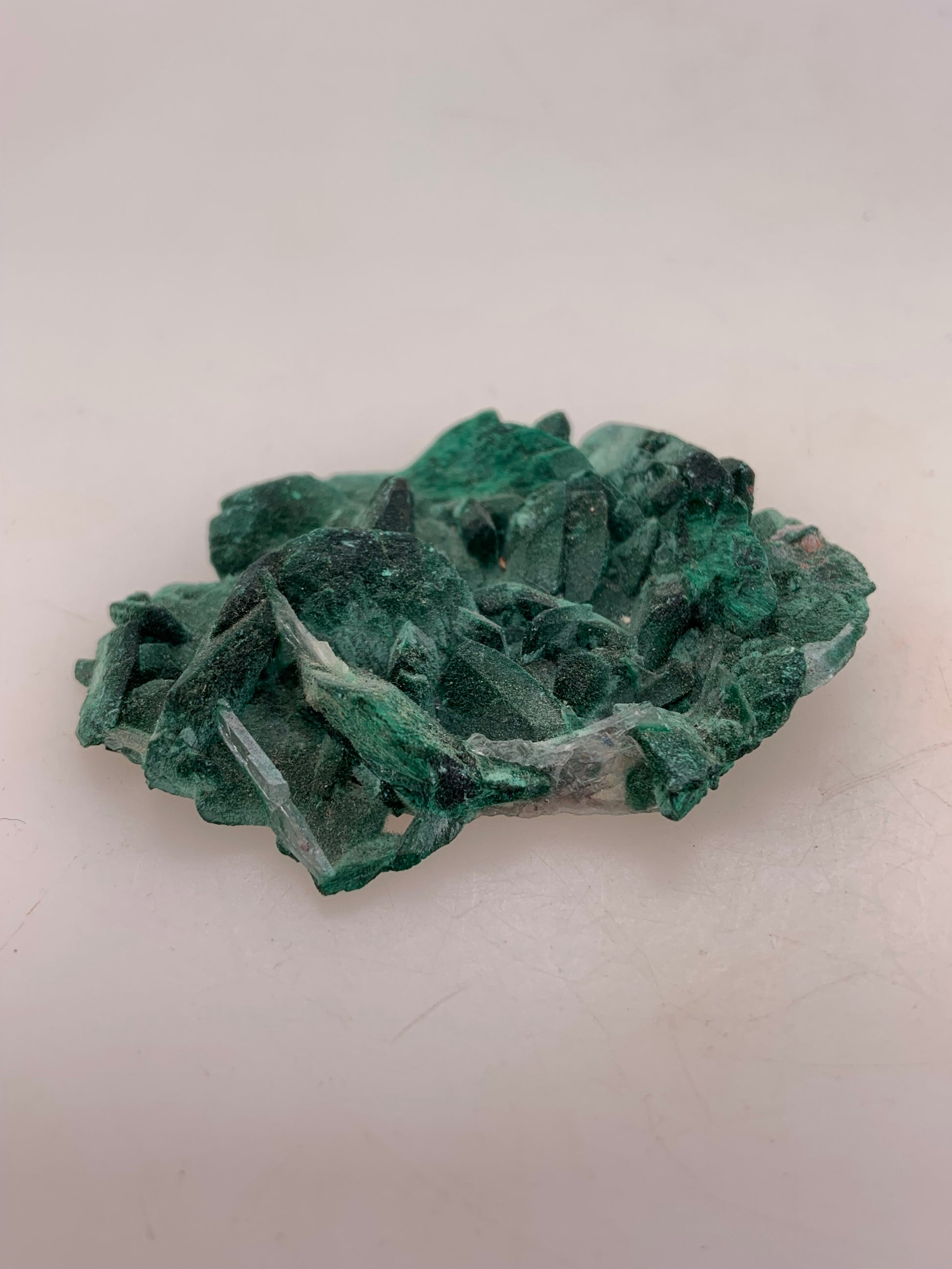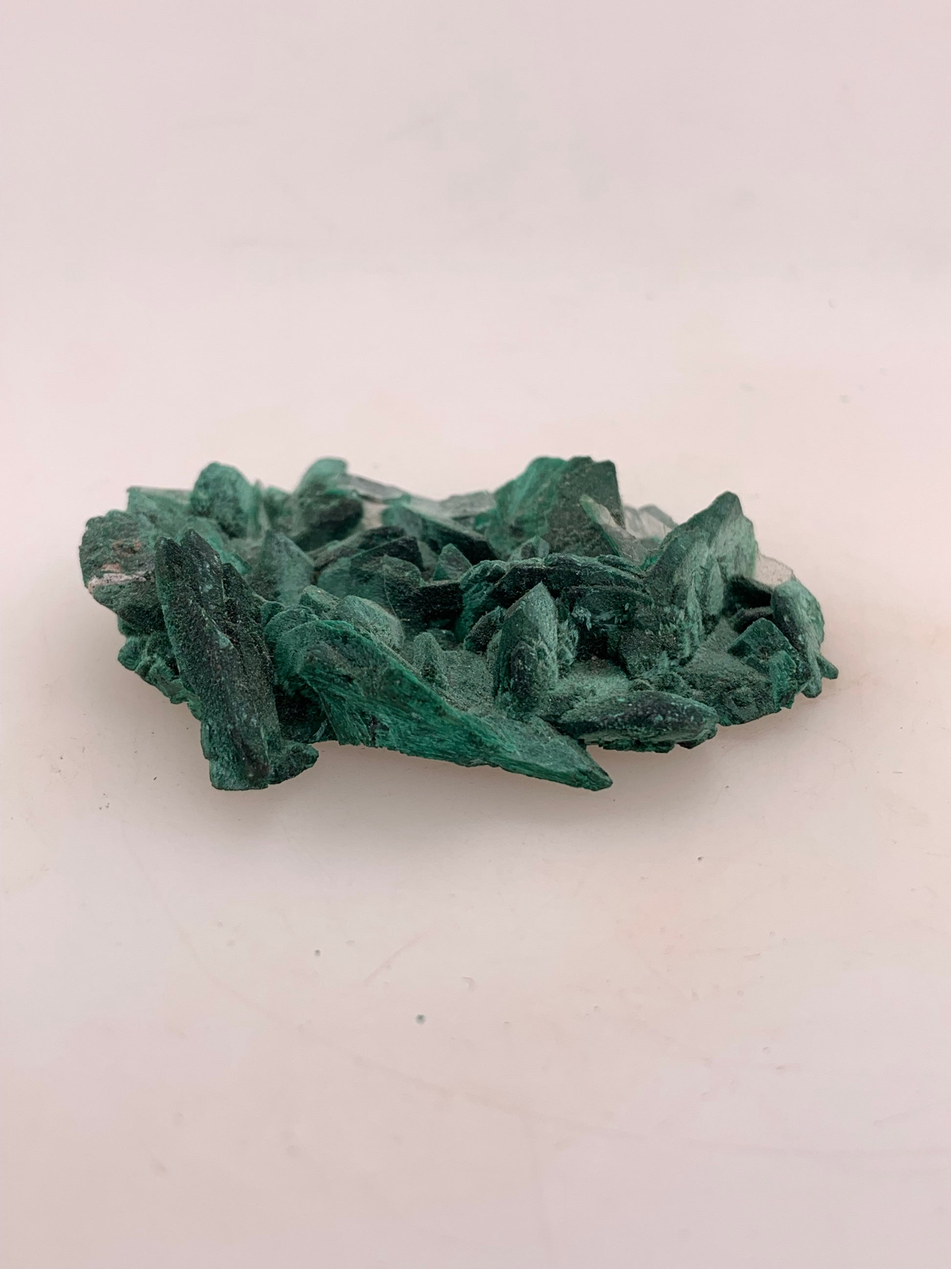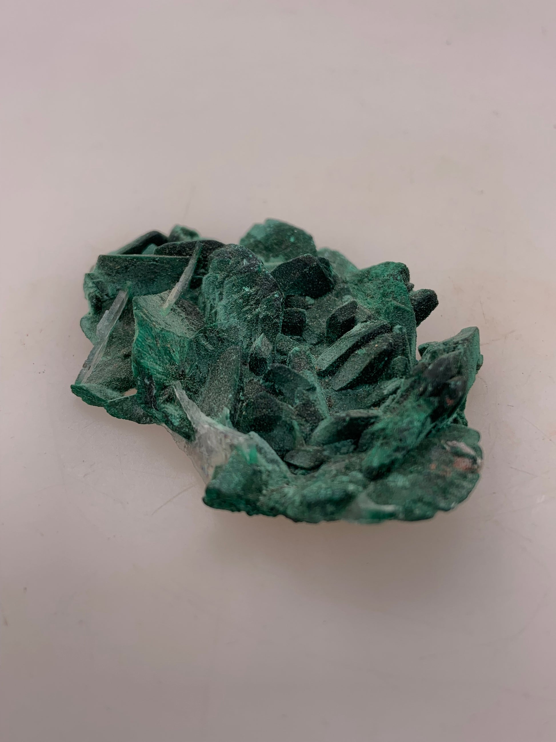 Crystal System: While Malachite crystallises in the monoclinic system, in pseudomorphs after Azurite, it adopts the original crystal structure of the Azurite, also monoclinic.