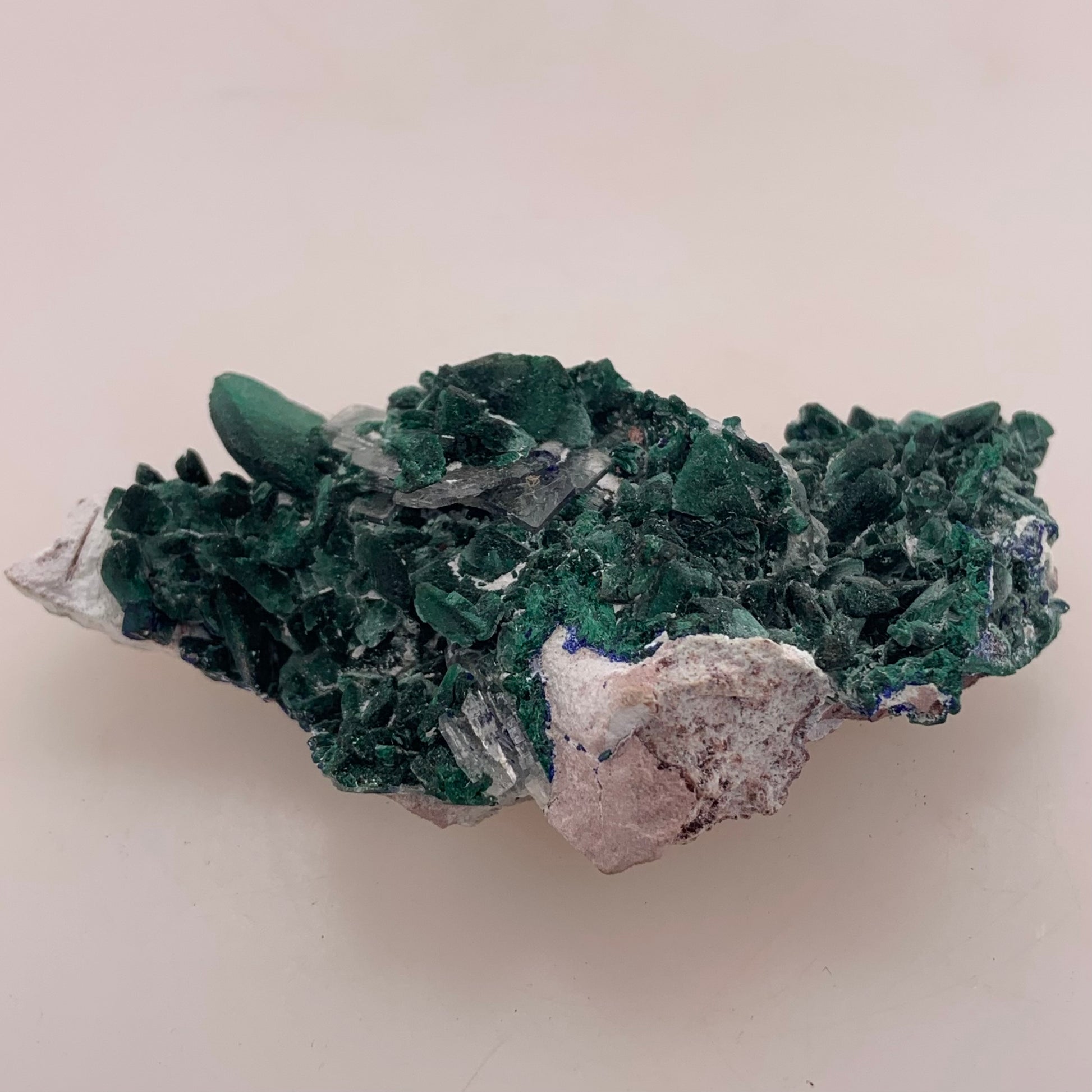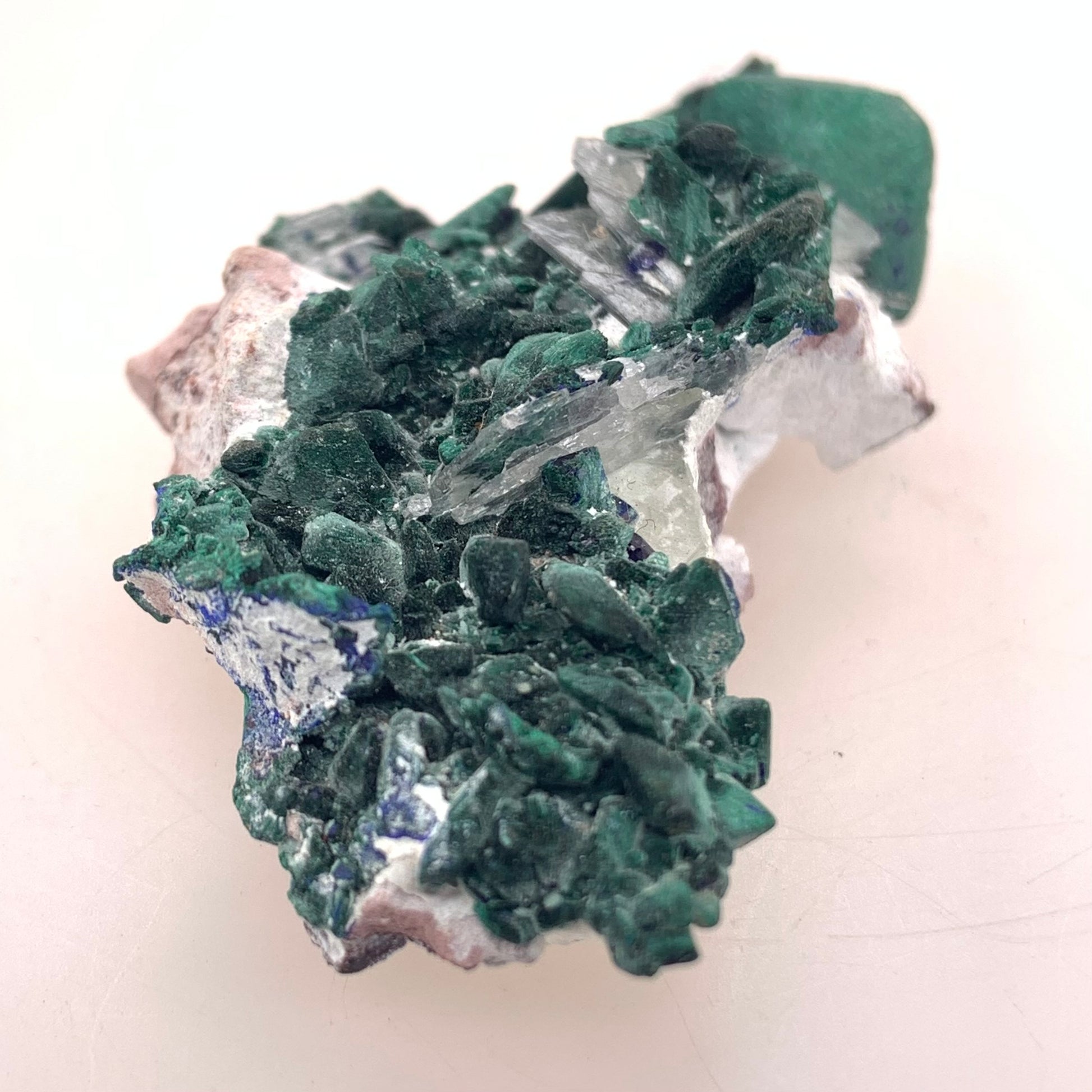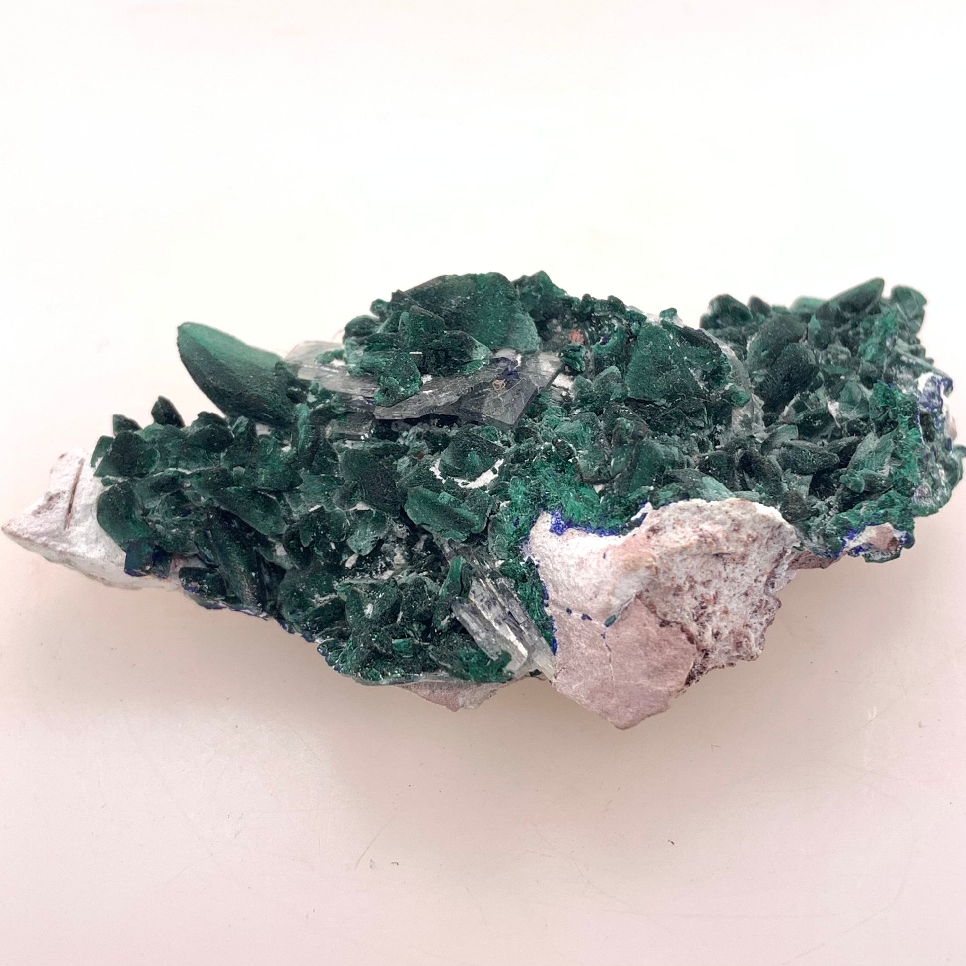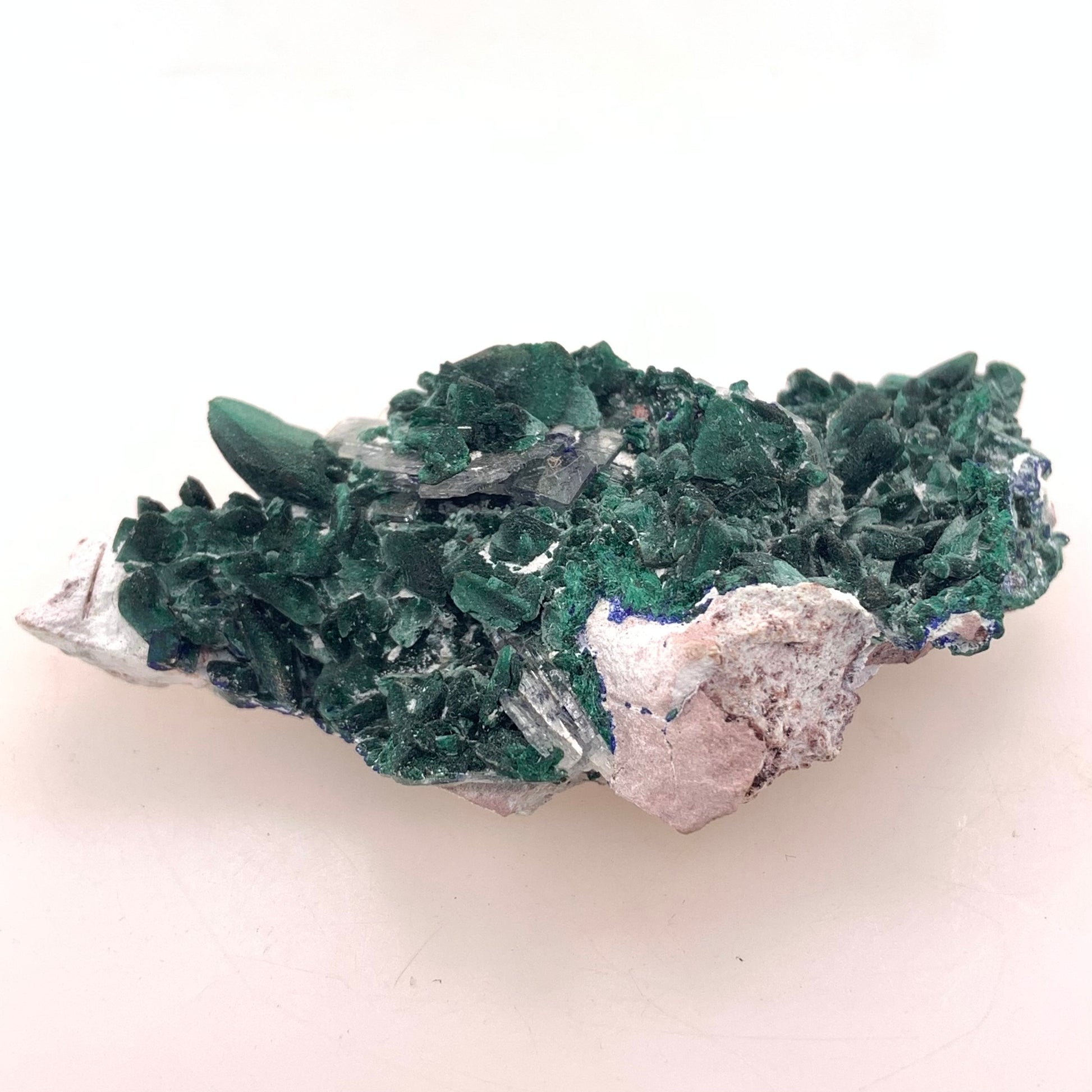 Malachite Pseudomorph after Azurite is believed to combine the metaphysical properties of both minerals. Malachite is associated with protection and healing, while Azurite is thought to enhance creativity and intuition. The merging of these two minerals is believed to offer a powerful tool for transformation and insight.